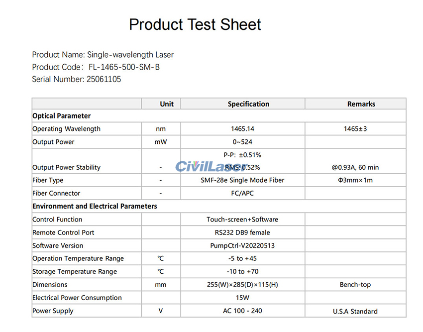 Utilizing high-stability single-mode fiber technology, it delivers a 1465nm output wavelength and 500mW power, offering excellent beam quality and suitable for applications in scientific research, medical treatment, sensing, and other fields. Its compact benchtop design supports plug-and-play operation and features intelligent temperature control and overload protection, ensuring continuous and stable operation. Compatible with OEM integration and customizable pulsed/continuous mode, it is an ideal light source for precision experiments and industrial testing.
