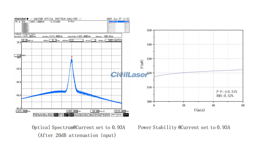 The 1465nm 500mW single-mode fiber benchtop laser features an all-fiber integrated design, achieving stable output through high-precision doped fiber and semiconductor pumping technology. Its core structure consists of three key modules: a seed source module utilizing distributed feedback (DFB) technology; an erbium-doped fiber amplifier module achieving 500mW amplification through multi-stage pumping; and an intelligent temperature control module.